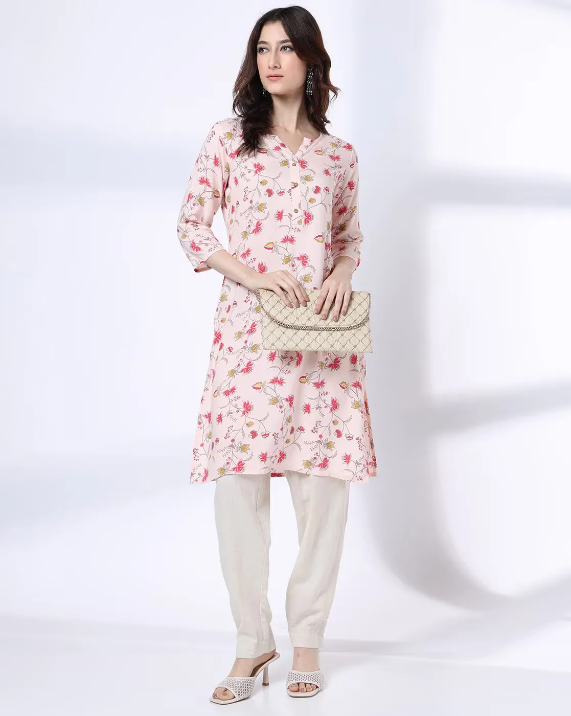Women Floral Print Cotton Straight Kurta
