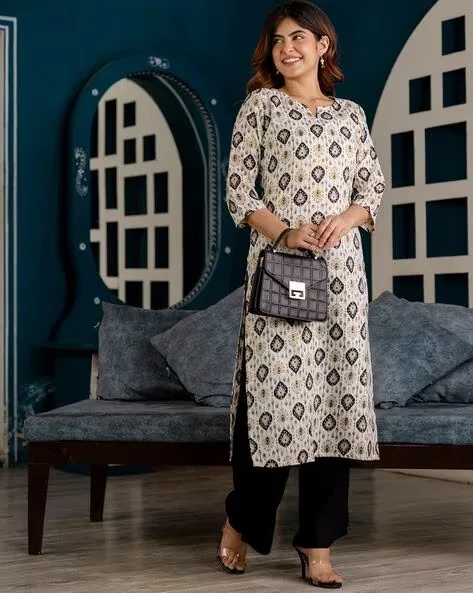 Women Micro Print Straight Kurta