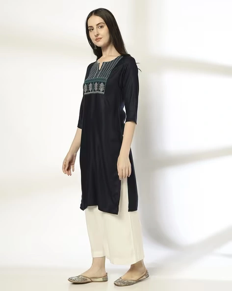 Women Zig-Zag Cross Stitch Embroidered Straight Kurta